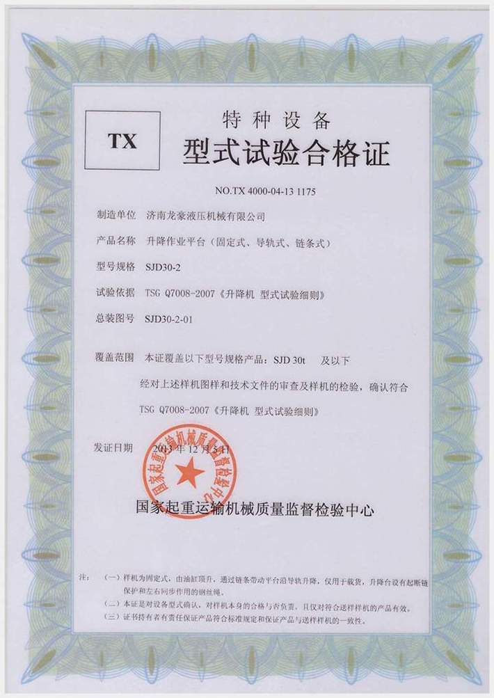 導(dǎo)軌式升降機合格證