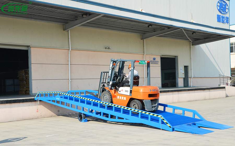 移動式液壓登車橋主要用于無裝卸設備的貨臺及流動裝卸場所,可與叉車配合使用,是貨物裝卸專用輔助設備。產品可達到的高度為1.1米至1.8米,可以根據貨車高度進行調節,是裝卸貨物不可缺少的升降液壓設備之一。移動式液壓登車橋的主要作用是在地平面與車廂之間搭起一座橋,有了它,叉車能直接從地面攜帶貨物駛入汽車車廂內部,進行批量裝卸作業。使用時前板架在貨車車廂上,起到承載重量的作用,減少了貨物重量對液壓設備的壓力,保證了液壓登車橋的使用壽命,從而達到長期使用的目的。借助液壓登車橋,叉車能直接駛入汽車集裝箱內部進行批量裝卸作業。